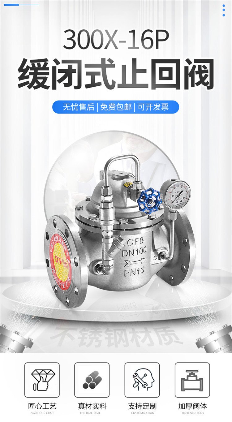 不锈钢缓闭式止回阀300X-16P