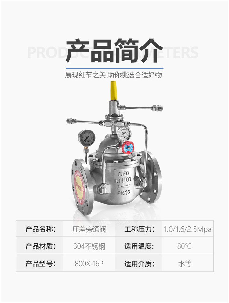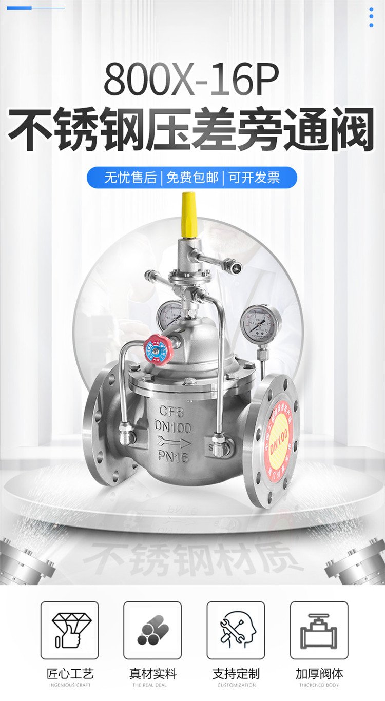 不锈钢压差旁通阀800X-16P 加厚阀体启闭平稳