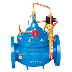 700X水泵控制阀由主阀4、针阀2、电磁向导阀7、单向阀6、球阀3、电器控制。压力等级:PN10、PN16、PN25 隔膜式:DN20-450,生产的700X水泵控制阀能够控制水泵的止回阀,当水泵停止运行前,由进口压力先关闭主阀的90%时,使水泵自动鼎峙,剩下的10%由回水关闭,可完全防止水锤现象产生,该适用于工矿企业、高层建筑中由水泵直接供水及生活用水管网系统。